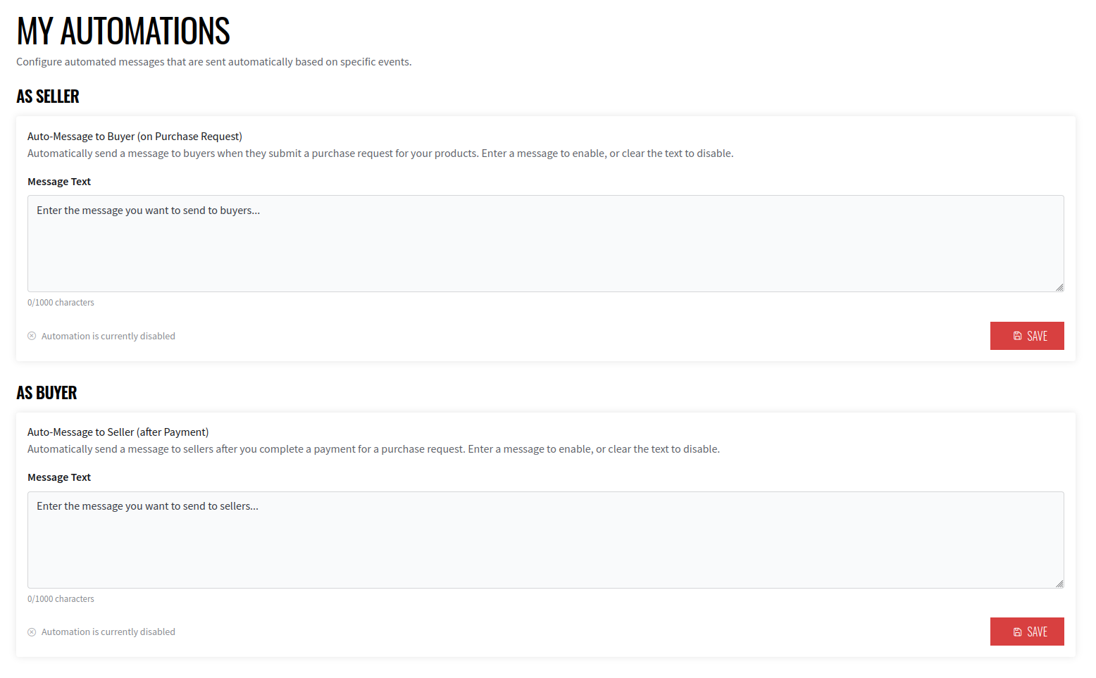 Sellers can now set up messages that are automatically sent to buyers after a purchase request is submitted. This allows sellers to provide important information such as shipping details, payment instructions, or simply a personalized thank-you message without having to manually respond to each purchase request.