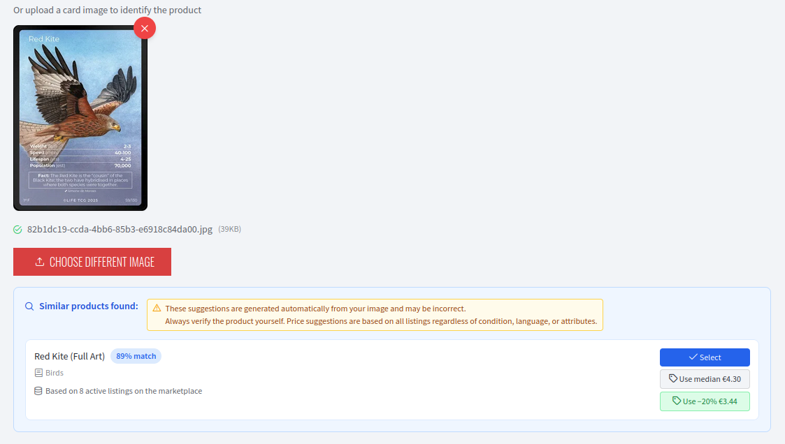 On top of that, CollectorsComet now suggests fitting prices based on existing listings on the platform. This gives you a quick and realistic idea of what price to list your card at.